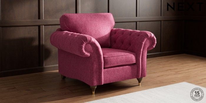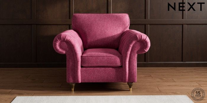 7.2.10 Gosford Highback II Deep Sit Armchair Cotswold Chenille Dark Raspberry Pink Modern Turned Metal Cap - Mid | Made Click here to use our website with more accessibility support, for example screen readers