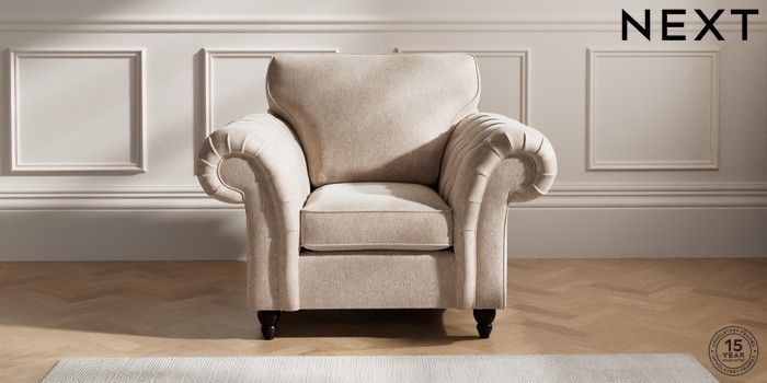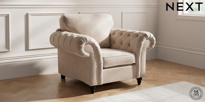 7.2.10 Gosford Highback II Deep Sit Armchair Cotswold Chenille Light Natural Low Turned - Dark | Made Click here to use our website with more accessibility support, for example screen readers