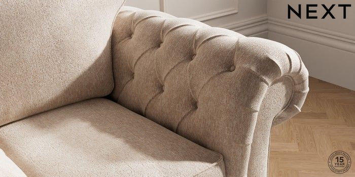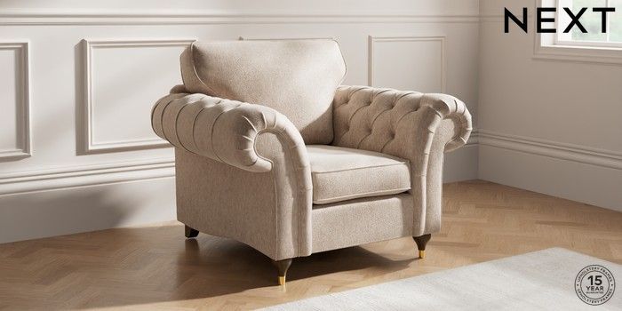7.2.10 Gosford Highback II Deep Sit Armchair Cotswold Chenille Light Natural Modern Turned Metal Cap - Mid | Made Click here to use our website with more accessibility support, for example screen readers