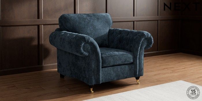 7.2.10 Gosford Highback II Deep Sit Armchair Distressed Velour Midnight Blue Castor - Dark | Made Click here to use our website with more accessibility support, for example screen readers