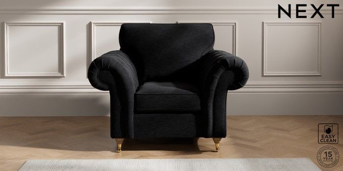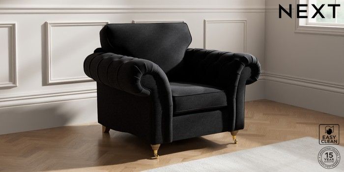 7.2.10 Gosford Highback II Deep Sit Armchair Fine Chenille Easy Clean Black Castor - Light | Made Click here to use our website with more accessibility support, for example screen readers