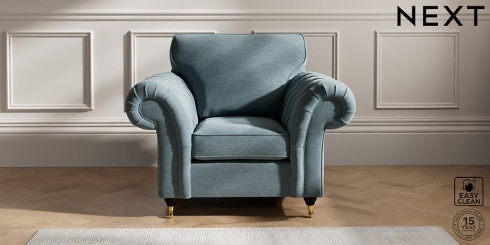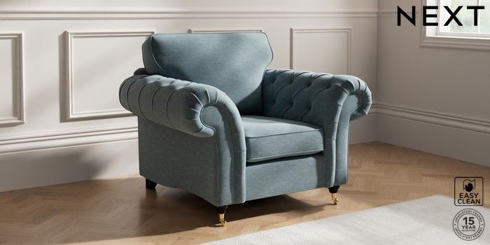 7.2.10 Gosford Highback II Deep Sit Armchair Fine Chenille Easy Clean Mid Blue Castor - Dark | Made Click here to use our website with more accessibility support, for example screen readers