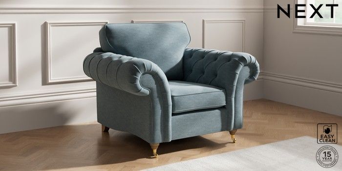 7.2.10 Gosford Highback II Deep Sit Armchair Fine Chenille Easy Clean Mid Blue Castor - Light | Made Click here to use our website with more accessibility support, for example screen readers