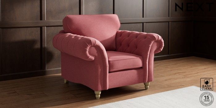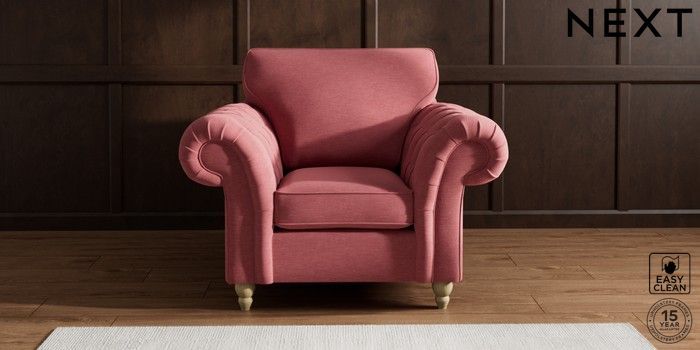 7.2.10 Gosford Highback II Deep Sit Armchair Fine Chenille Easy Clean Mid Pink Low Turned - Light | Made Click here to use our website with more accessibility support, for example screen readers