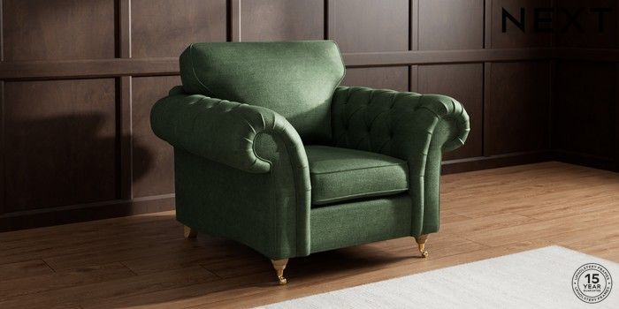 7.2.10 Gosford Highback II Deep Sit Armchair Luxe Chenille Dark Green Castor - Light | Made Click here to use our website with more accessibility support, for example screen readers