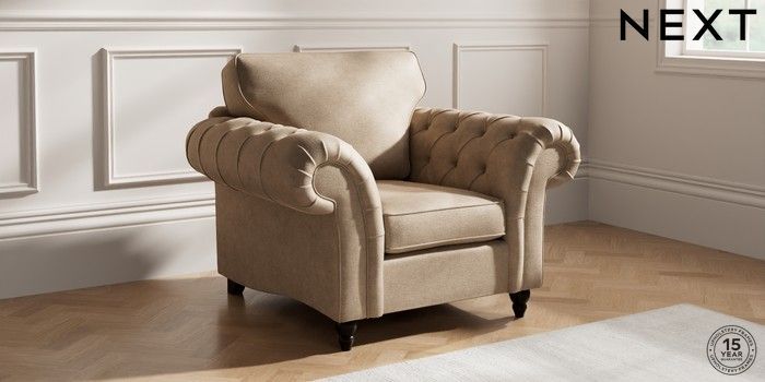 7.2.10 Gosford Highback II Deep Sit Armchair Luxe Chenille Mid Camel Beige Low Turned - Dark | Made Click here to use our website with more accessibility support, for example screen readers