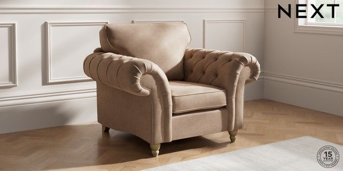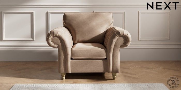7.2.10 Gosford Highback II Deep Sit Armchair Luxe Chenille Mid Natural Low Turned - Light | Made Click here to use our website with more accessibility support, for example screen readers
