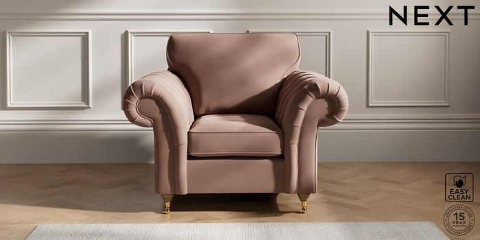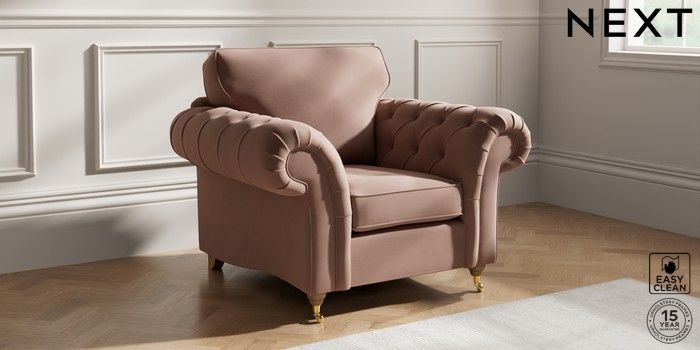 7.2.10 Gosford Highback II Deep Sit Armchair Plush Velvet Easy Clean Mid Natural Castor - Light | Made Click here to use our website with more accessibility support, for example screen readers