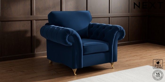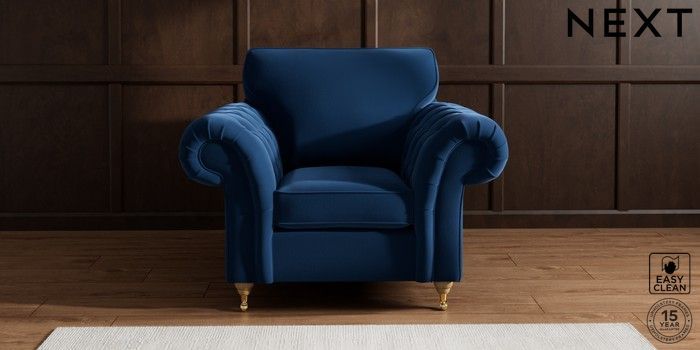 7.2.10 Gosford Highback II Deep Sit Armchair Plush Velvet Easy Clean Navy Blue Castor - Light | Made Click here to use our website with more accessibility support, for example screen readers