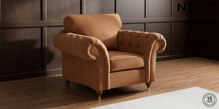 7.2.10 Gosford Highback II Deep Sit Armchair Ripple Chenille Mid Rust Brown Modern Turned Metal Cap - Mid | Made Click here to use our website with more accessibility support, for example screen readers