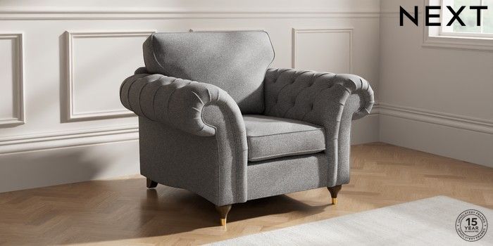 7.2.10 Gosford Highback II Deep Sit Armchair Studio Chenille Mid Grey Modern Turned Metal Cap - Mid | Made Click here to use our website with more accessibility support, for example screen readers
