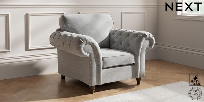7.2.10 Gosford Highback II Deep Sit Armchair Tweedy Blend Easy Clean Light Silver Grey Low Turned - Mid | Made Click here to use our website with more accessibility support, for example screen readers