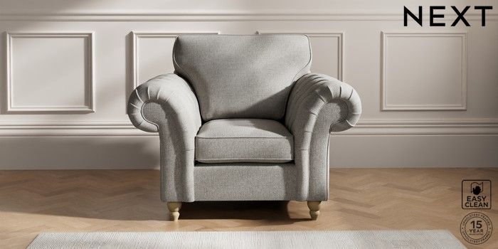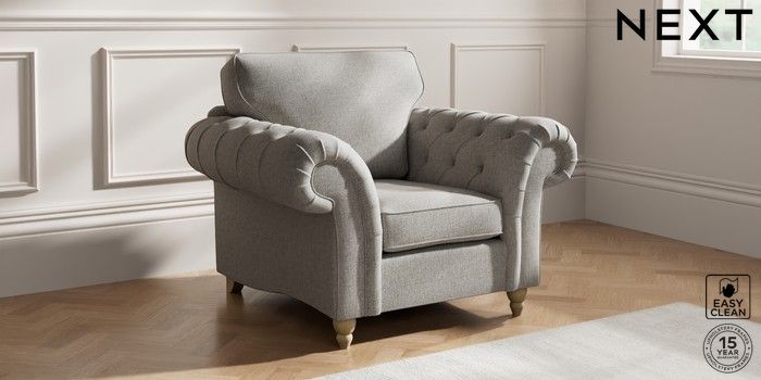 7.2.10 Gosford Highback II Deep Sit Armchair Woven Chenille Easy Clean Light Grey Low Turned - Light | Made Click here to use our website with more accessibility support, for example screen readers