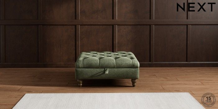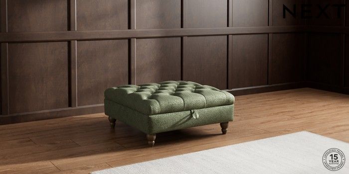 7.2.10 Gosford Highback II Deep Sit Extra Large Storage Footstool Boucle Chenille Dark Moss Green Low Turned - Mid | Made Click here to use our website with more accessibility support, for example screen readers