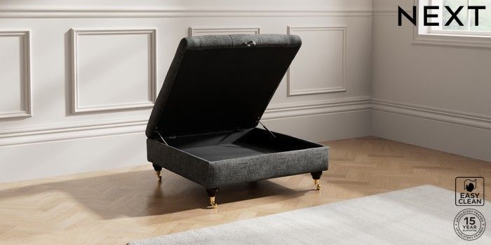 7.2.10 Gosford Highback II Deep Sit Extra Large Storage Footstool Boucle Weave Easy Clean Charcoal Grey Castor - Dark | Made Click here to use our website with more accessibility support, for example screen readers
