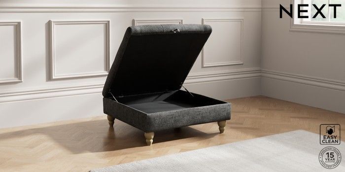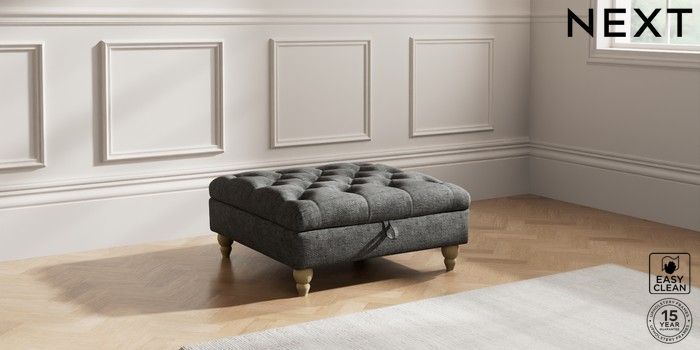 7.2.10 Gosford Highback II Deep Sit Extra Large Storage Footstool Boucle Weave Easy Clean Charcoal Grey Low Turned - Light | Made Click here to use our website with more accessibility support, for example screen readers