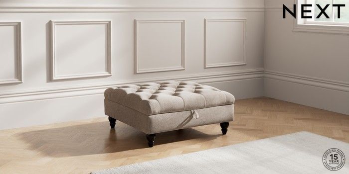 7.2.10 Gosford Highback II Deep Sit Extra Large Storage Footstool Chunky Chenille Light Dove Low Turned - Dark | Made Click here to use our website with more accessibility support, for example screen readers