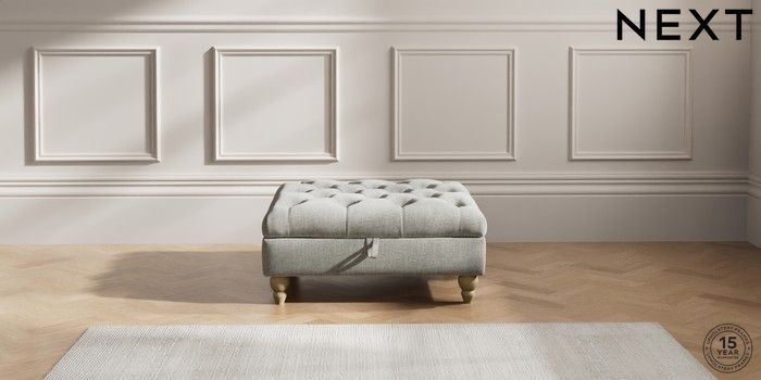 7.2.10 Gosford Highback II Deep Sit Extra Large Storage Footstool Chunky Chenille Light Grey Low Turned - Light | Made Click here to use our website with more accessibility support, for example screen readers