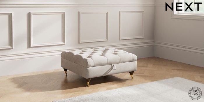 7.2.10 Gosford Highback II Deep Sit Extra Large Storage Footstool Chunky Chenille Oyster Castor - Mid | Made Click here to use our website with more accessibility support, for example screen readers