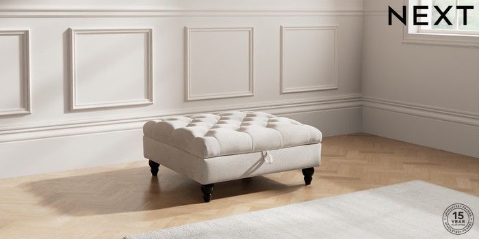 7.2.10 Gosford Highback II Deep Sit Extra Large Storage Footstool Chunky Chenille Oyster Low Turned - Dark | Made Click here to use our website with more accessibility support, for example screen readers