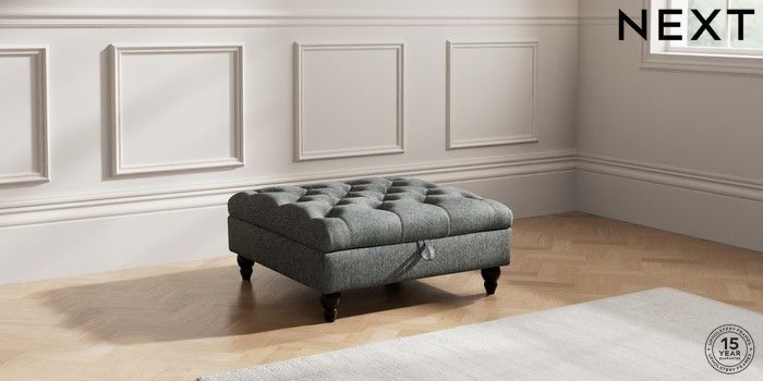 7.2.10 Gosford Highback II Deep Sit Extra Large Storage Footstool Cotswold Chenille Dark Grey Low Turned - Dark | Made Click here to use our website with more accessibility support, for example screen readers