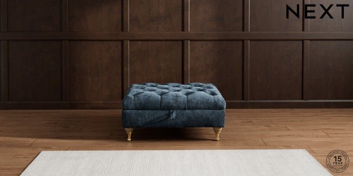 7.2.10 Gosford Highback II Deep Sit Extra Large Storage Footstool Distressed Velour Midnight Blue Castor - Light | Made Click here to use our website with more accessibility support, for example screen readers