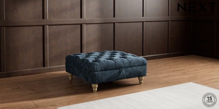 7.2.10 Gosford Highback II Deep Sit Extra Large Storage Footstool Distressed Velour Midnight Blue Low Turned - Light | Made Click here to use our website with more accessibility support, for example screen readers