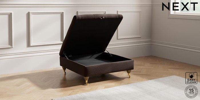 7.2.10 Gosford Highback II Deep Sit Extra Large Storage Footstool Fine Chenille Easy Clean Chocolate Brown Castor - Light | Made Click here to use our website with more accessibility support, for example screen readers