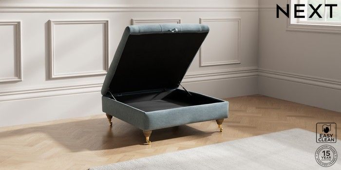 7.2.10 Gosford Highback II Deep Sit Extra Large Storage Footstool Fine Chenille Easy Clean Mid Blue Castor - Light | Made Click here to use our website with more accessibility support, for example screen readers