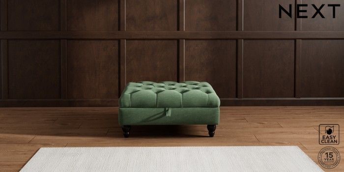 7.2.10 Gosford Highback II Deep Sit Extra Large Storage Footstool Fine Chenille Easy Clean Mid Khaki Green Low Turned - Dark | Made Click here to use our website with more accessibility support, for example screen readers