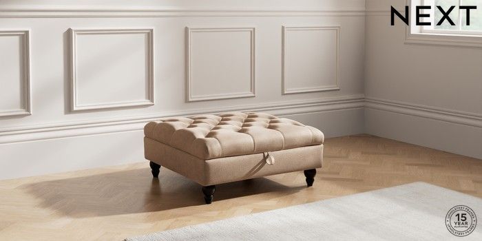 7.2.10 Gosford Highback II Deep Sit Extra Large Storage Footstool Luxe Chenille Mid Natural Low Turned - Dark | Made Click here to use our website with more accessibility support, for example screen readers