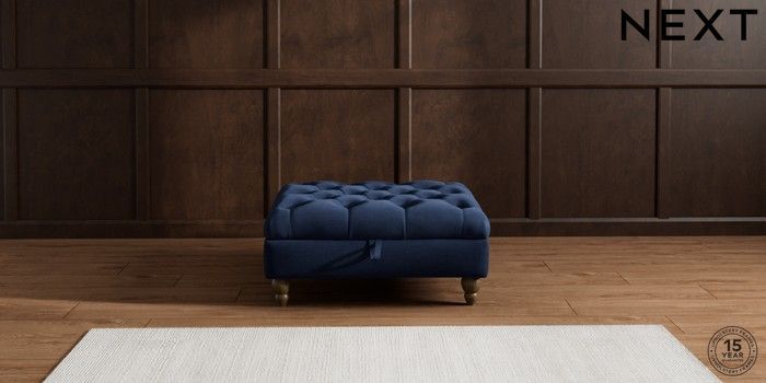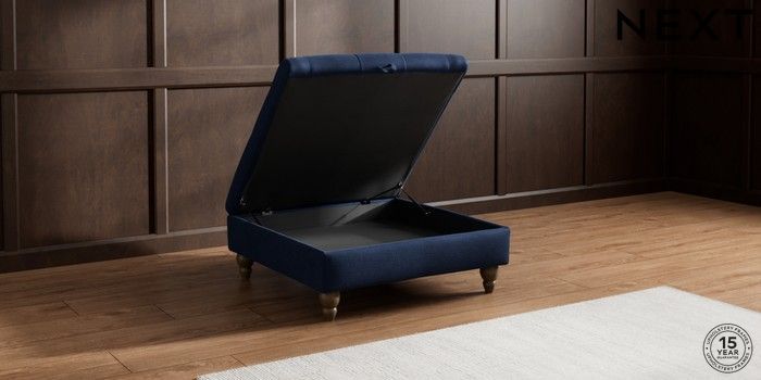 7.2.10 Gosford Highback II Deep Sit Extra Large Storage Footstool Luxe Chenille Navy Blue Low Turned - Mid | Made Click here to use our website with more accessibility support, for example screen readers