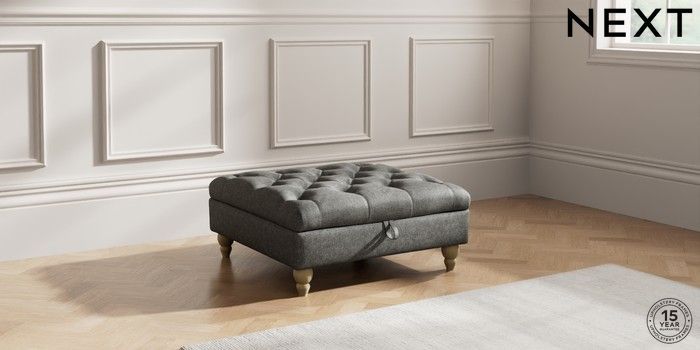 7.2.10 Gosford Highback II Deep Sit Extra Large Storage Footstool Plush Chenille Dark Grey Low Turned - Light | Made Click here to use our website with more accessibility support, for example screen readers