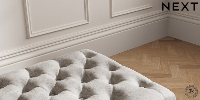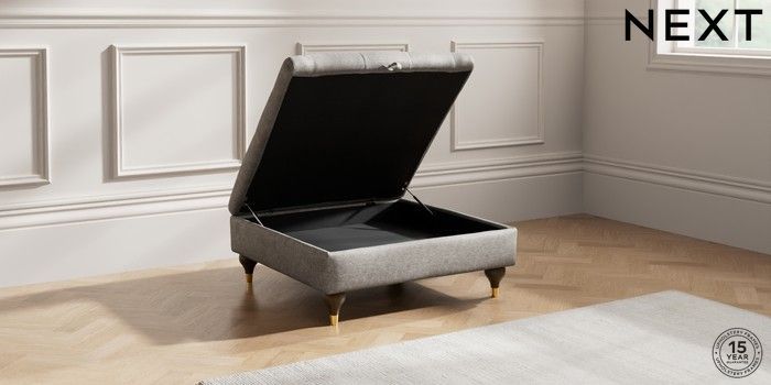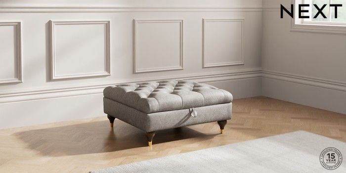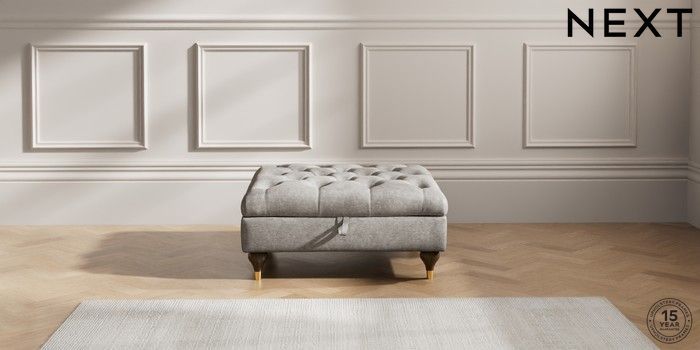 7.2.10 Gosford Highback II Deep Sit Extra Large Storage Footstool Plush Chenille Light Grey Modern Turned Metal Cap - Mid | Made Click here to use our website with more accessibility support, for example screen readers