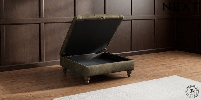 7.2.10 Gosford Highback II Deep Sit Extra Large Storage Footstool Plush Chenille Moss Green Low Turned - Mid | Made Click here to use our website with more accessibility support, for example screen readers
