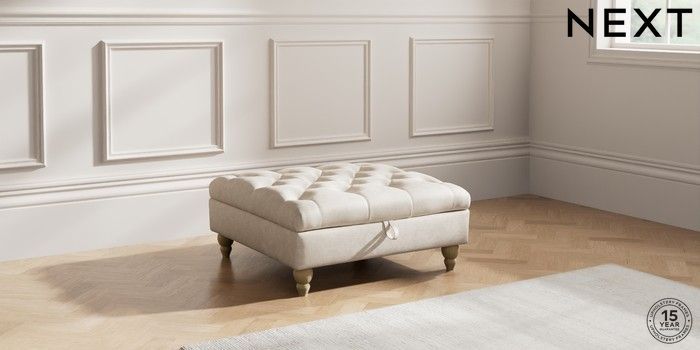 7.2.10 Gosford Highback II Deep Sit Extra Large Storage Footstool Plush Chenille Oyster Low Turned - Light | Made Click here to use our website with more accessibility support, for example screen readers