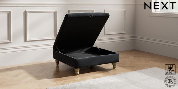 7.2.10 Gosford Highback II Deep Sit Extra Large Storage Footstool Plush Velvet Easy Clean Charcoal Grey Low Turned - Light | Made Click here to use our website with more accessibility support, for example screen readers