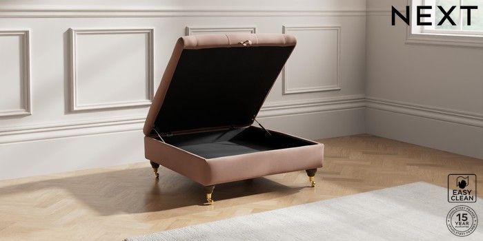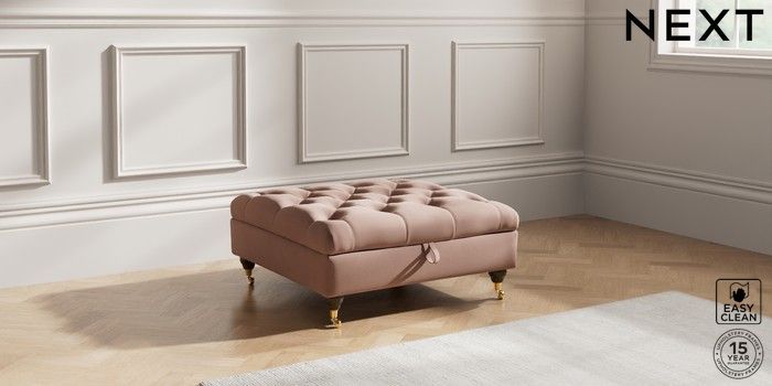 7.2.10 Gosford Highback II Deep Sit Extra Large Storage Footstool Plush Velvet Easy Clean Mid Natural Castor - Mid | Made Click here to use our website with more accessibility support, for example screen readers