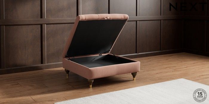 7.2.10 Gosford Highback II Deep Sit Extra Large Storage Footstool Relaxed Linen Look Light Rust Brown Modern Turned Metal Cap - Mid | Made Click here to use our website with more accessibility support, for example screen readers