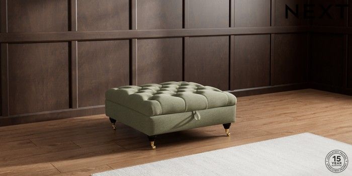 7.2.10 Gosford Highback II Deep Sit Extra Large Storage Footstool Ripple Chenille Mid Moss Green Castor - Dark | Made Click here to use our website with more accessibility support, for example screen readers