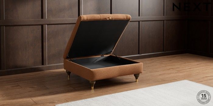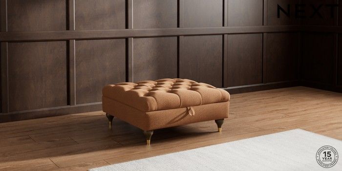 7.2.10 Gosford Highback II Deep Sit Extra Large Storage Footstool Ripple Chenille Mid Rust Brown Modern Turned Metal Cap - Mid | Made Click here to use our website with more accessibility support, for example screen readers