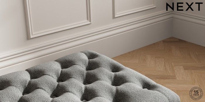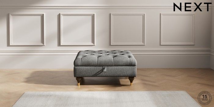 7.2.10 Gosford Highback II Deep Sit Extra Large Storage Footstool Tweedy Chenille Dark Grey Modern Turned Metal Cap - Mid | Made Click here to use our website with more accessibility support, for example screen readers