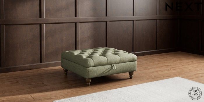 7.2.10 Gosford Highback II Deep Sit Extra Large Storage Footstool Tweedy Chenille Mid Moss Green Low Turned - Mid | Made Click here to use our website with more accessibility support, for example screen readers