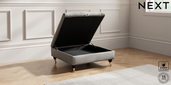 7.2.10 Gosford Highback II Deep Sit Extra Large Storage Footstool Woven Chenille Easy Clean Light Grey Castor - Dark | Made Click here to use our website with more accessibility support, for example screen readers