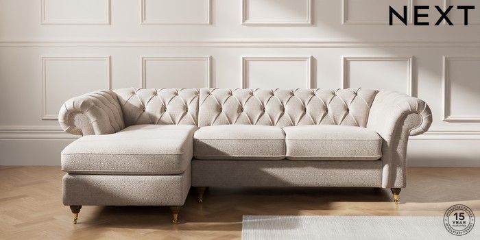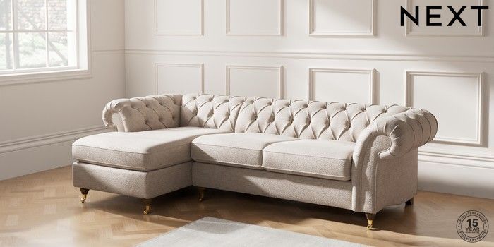 7.2.10 Gosford Highback II Deep Sit Medium Sofa Chaise - Left Hand Boucle Chenille Light Natural Castor - Mid | Made Click here to use our website with more accessibility support, for example screen readers