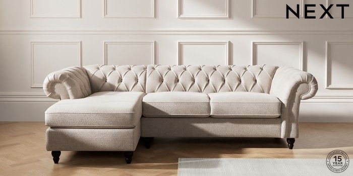 7.2.10 Gosford Highback II Deep Sit Medium Sofa Chaise - Left Hand Boucle Chenille Light Natural Low Turned - Dark | Made Click here to use our website with more accessibility support, for example screen readers