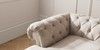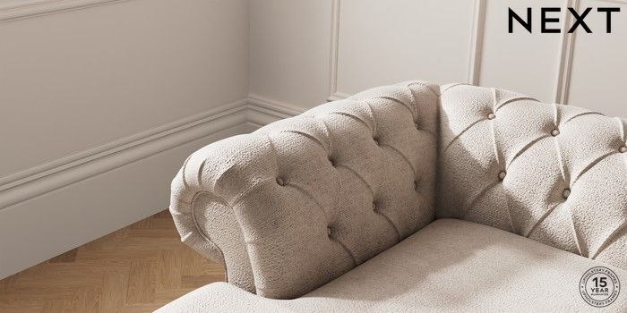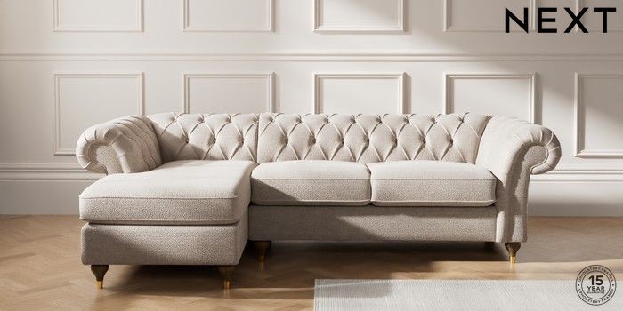 7.2.10 Gosford Highback II Deep Sit Medium Sofa Chaise - Left Hand Boucle Chenille Light Natural Modern Turned Metal Cap - Mid | Made Click here to use our website with more accessibility support, for example screen readers