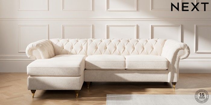 7.2.10 Gosford Highback II Deep Sit Medium Sofa Chaise - Left Hand Boucle Chenille Oyster Castor - Mid | Made Click here to use our website with more accessibility support, for example screen readers