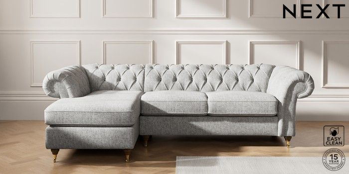 7.2.10 Gosford Highback II Deep Sit Medium Sofa Chaise - Left Hand Chunky Boucle Easy Clean Light Grey Castor - Mid | Made Click here to use our website with more accessibility support, for example screen readers