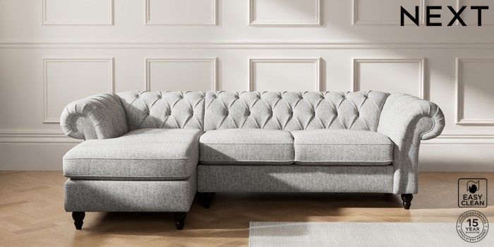 7.2.10 Gosford Highback II Deep Sit Medium Sofa Chaise - Left Hand Chunky Boucle Easy Clean Light Grey Low Turned - Dark | Made Click here to use our website with more accessibility support, for example screen readers